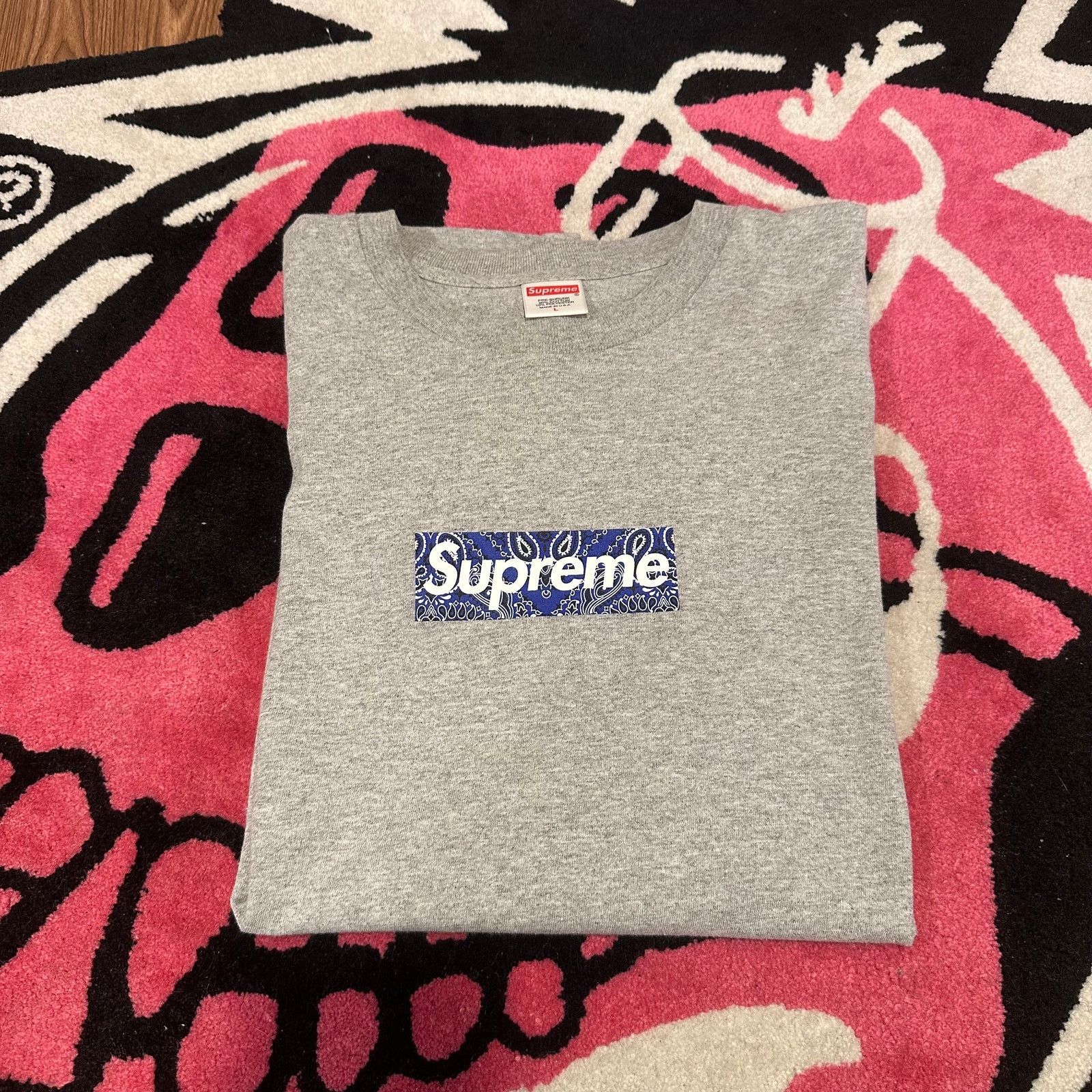 Supreme Bandana Box Logo Tee Heather Grey - Size Large